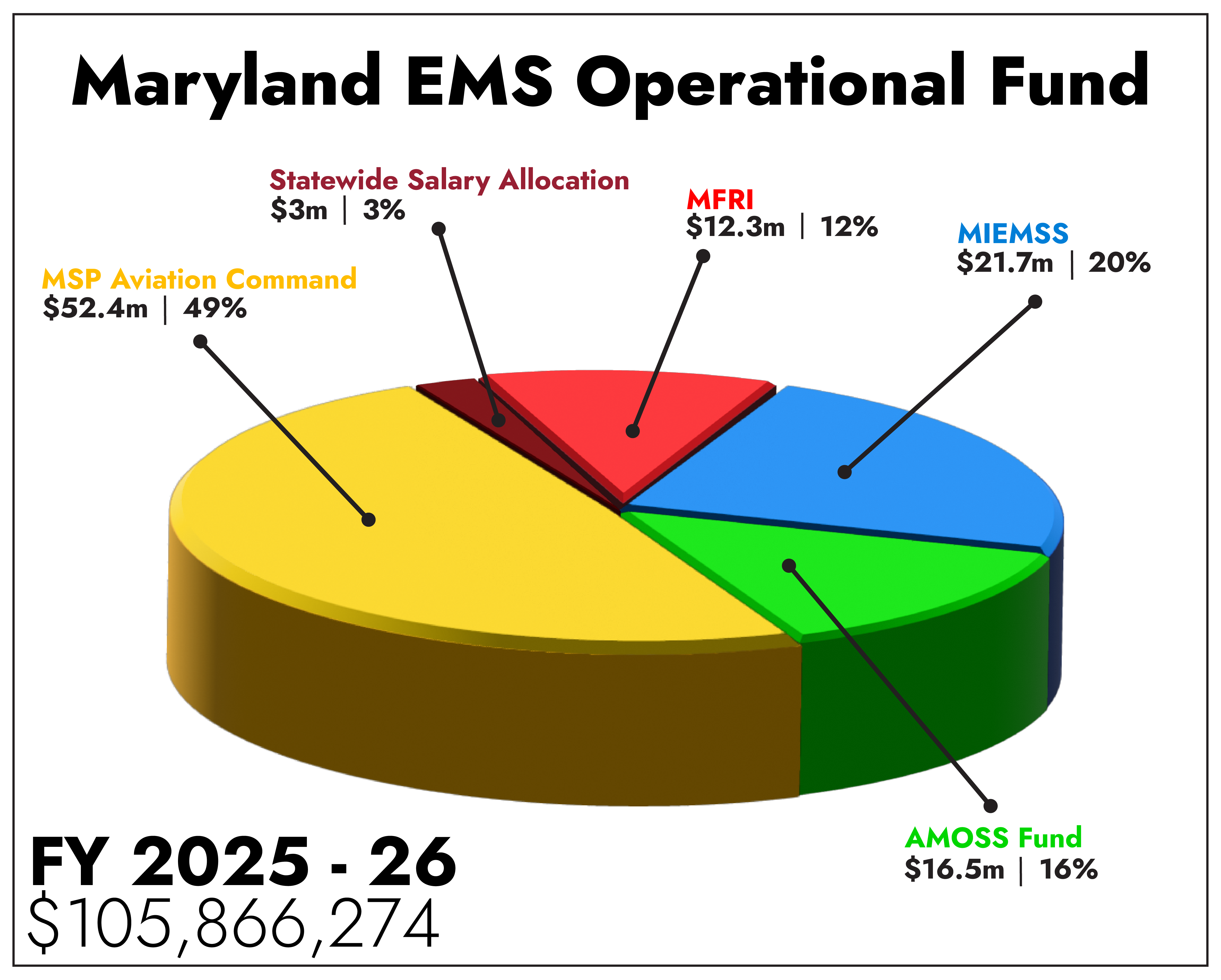 The Procurement Unit obtains all necessary supplies, materials, and services required by MIEMSS to fulfill its mission in accordance with all applicable state procurement laws and regulations. The Procurement Unit is responsible for contract and grant administration. Administration’s other responsibilities include inventory control, fleet management, travel services, and building operations and maintenance. In addition, Administration supports legislative and regulatory initiatives and provides financial data relevant to the legislative actions that support the Maryland Emergency Medical Services Operations Fund.